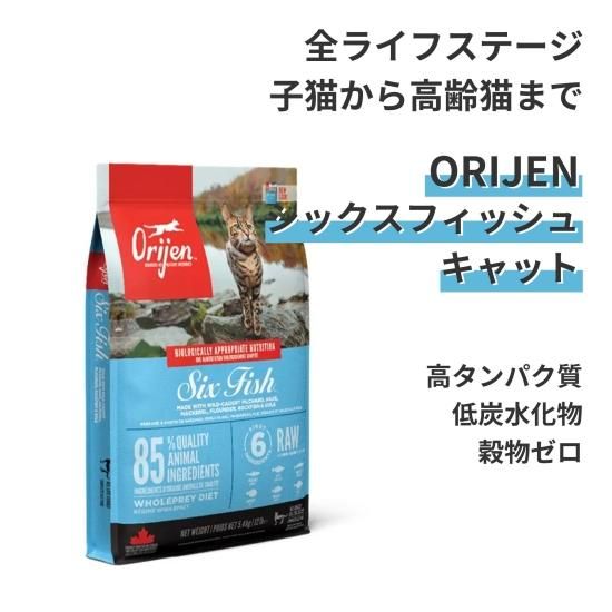 オリジン シックスフィッシュ キャットは、たんぱく質と脂肪由来のカロリーがより多く、炭水化物由来の カロリーがより少なくなっています。